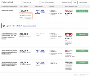 Suchst du eine hervorragende Soundbar zu einem günstigen Preis? Dann hat deine Suche hier ein Ende. Bei idealo gibt es aktuell die Teufel CINEBAR ONE Soundbar in elegantem Schwarz für nur 164,98 € inklusive Versand - ein Top-Angebot im Vergleich zum regulären Preis von 225 €. Um auf den Preis zu kommen, Nutzen Sie den Gutscheincode "TFL-8D4CGSY4" im Warenkorb. Die Teufel CINEBAR ONE beeindruckt nicht nur durch ihren äußerst attraktiven Preis, sondern auch mit ihrer erstklassigen Klangqualität und ihrem eleganten Design.